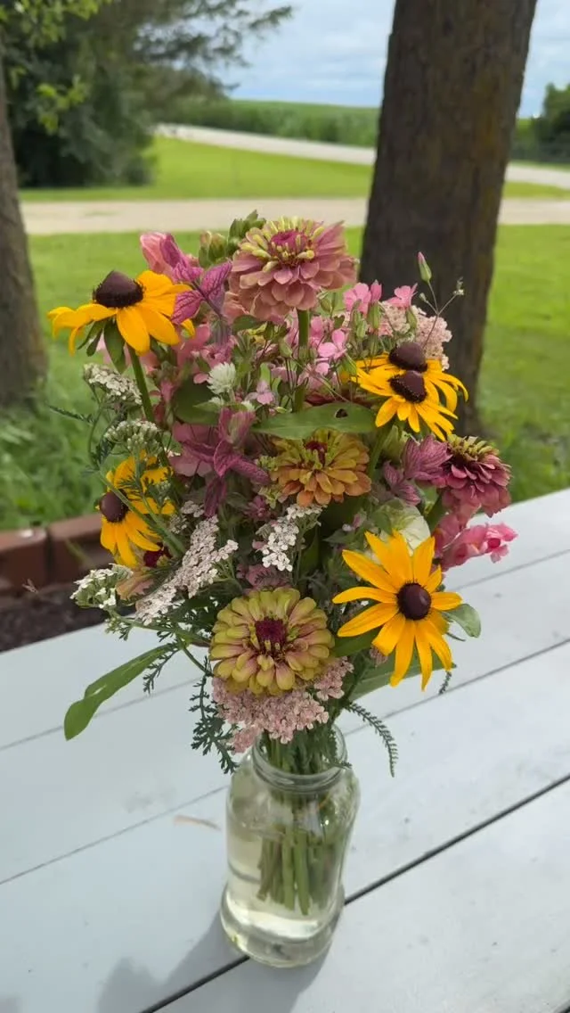 We are a small flower farm in SE MN. We offer fresh, locally grown flowers in bouquets at our farmstand, custom bouquets, and a you-pick option. We are working on developing an offering of specialty fruit and berries such as artic kiwi, honeyberries, goji berries, jostaberries and more!